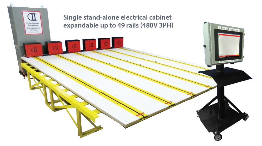 Automatic Truss Jigging System to drastically reduce setup times on tables that conventionally yield 100% embedment on the table but have previously been limited to only manual jigging and/or laser projection.